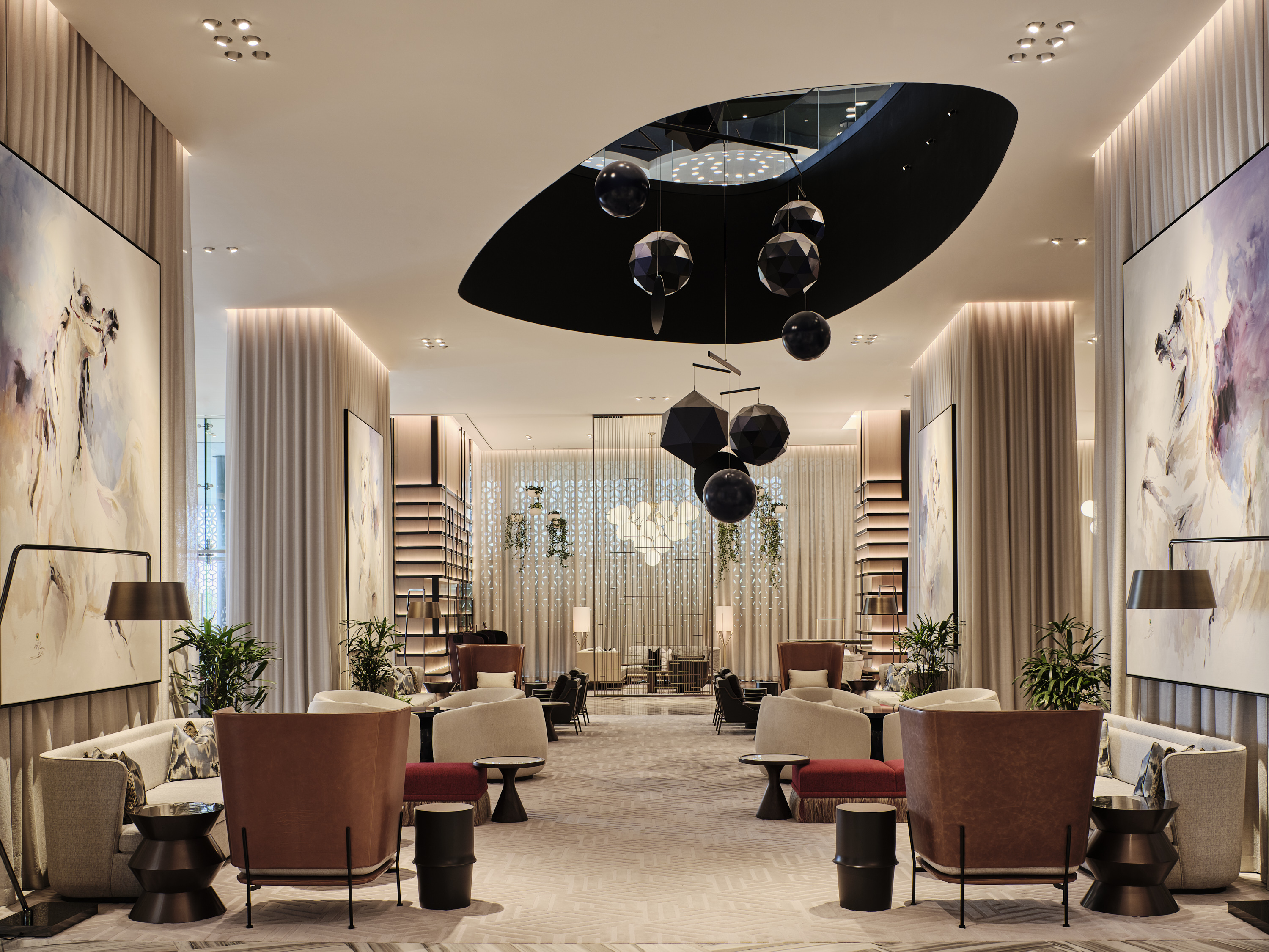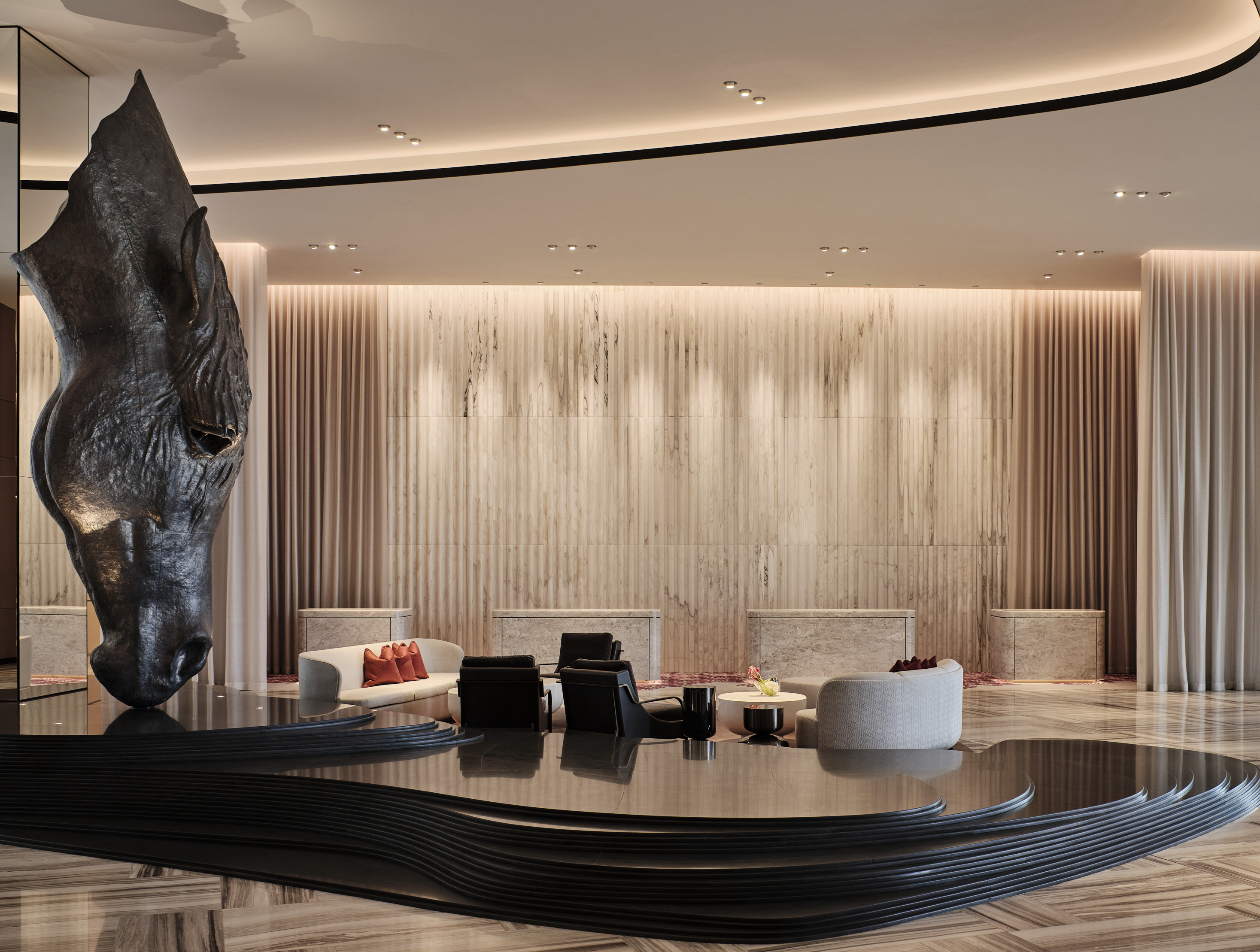 Award-winning lighting consultants, Elektra Lighting specified bespoke lighting solutions from lighting manufacturer, LEDFlex to create a soft and elegant ambience synonymous with luxury and relaxation throughout all the spaces. Upon arrival guests are instantly captivated by the dramatic lobby with exceptional art that celebrates the region, surrounded by swathes of white drapery, a marble water feature at the centre, plush seating and wall panels in geometric patterns. LEDFlex Lumen Line 240 in 2700K provides flexible low-level lighting in troughs and coves to cast public areas with a decadent and dynamic backdrop for socialisation and leisure.