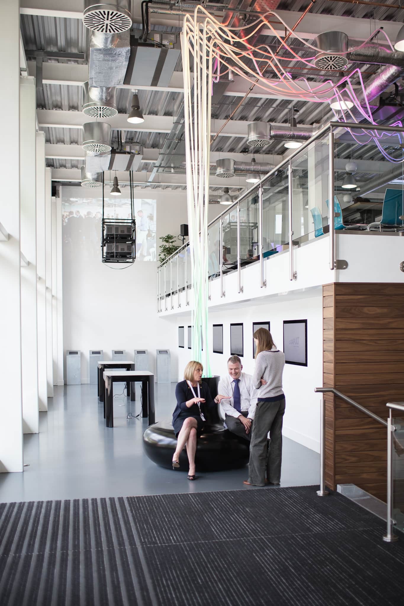 In this particular project, the lighting installation to be placed in their Innovation Centre for visual purposes rather than to illuminate a dark space. The client wanted lighting that could echo the concept of moving people and goods, and so for this our Domed Neon Pixel was the perfect choice. The Domed Neon Pixel features a rounded diffuser to produce a wider beam angle, and can produce a rich spectrum of light colours to achieve the effect of 'moving' whilst changing colours.