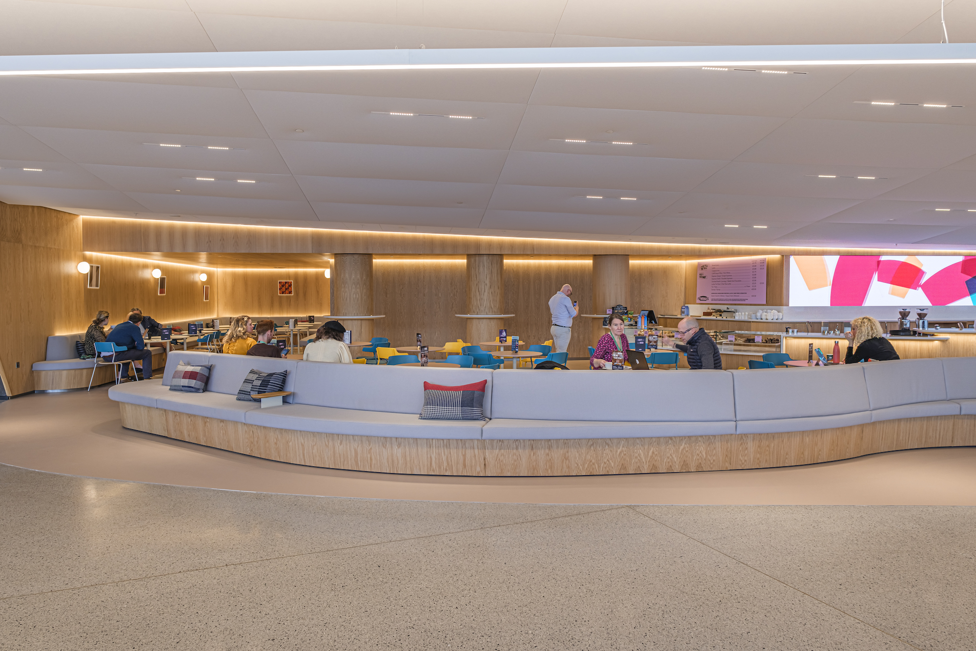 Working closely with DHA Designs and Viewport Studios, LEDFlex brought its expertise to create a bespoke lighting scheme that would infuse warmth and consistency into these dedicated spaces. The Foyer, previously dimly lit and dreary with harsh materials, underwent a stunning metamorphosis. The key objective was to introduce ample lighting without compromising the aesthetics of the space. The solution was found in LEDFlex's High Lumen Ultimo Neon 16, which now softly and warmly illuminates the Foyer, discreetly integrated along the room's edges, under the bar's vertical face, and in the ceiling details. The interior is further modernised using natural finishes like oak panelling and LEDFlex's high efficient Eco Flex and ultra slim Nano Flex, blending seamlessly into the bar joinery construction. Moreover, rich wool mix fabrics elevate the look, and a neutral flooring choice enables soft, diffused, and reflected lighting.